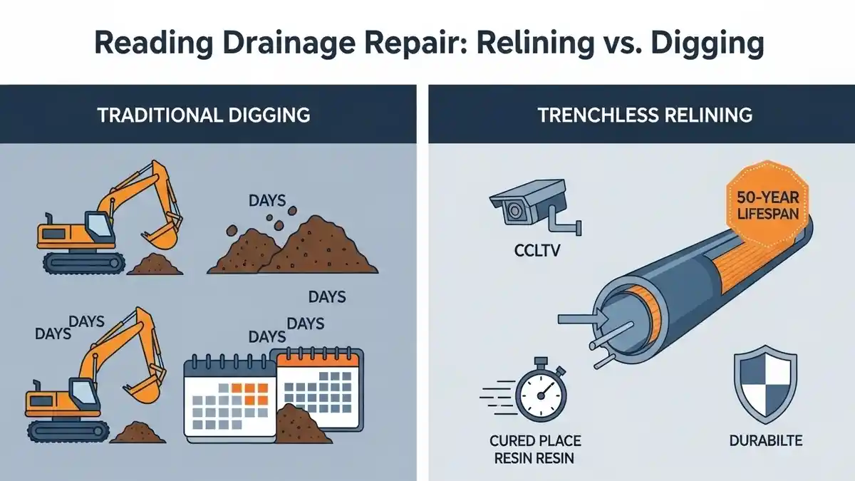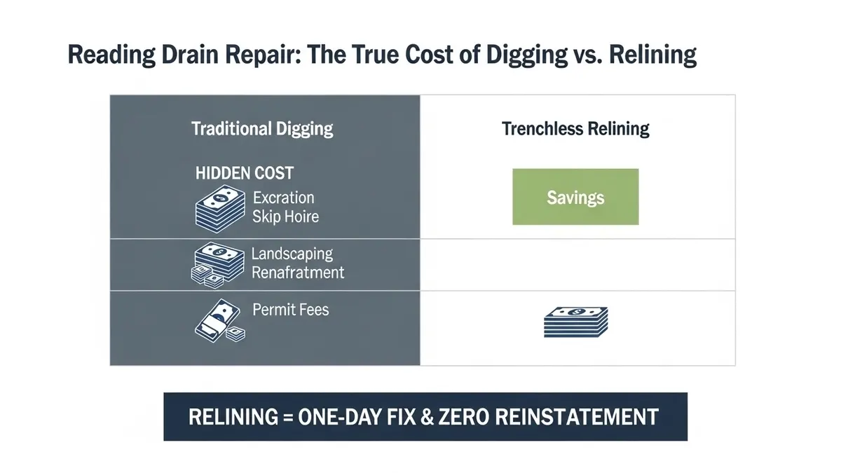 Avoid costly, messy excavations. Compare Hayes Drain Relining vs Digging to save your home, time, and money with our expert, minimally invasive, and durable no-dig repair solutions for local drains.